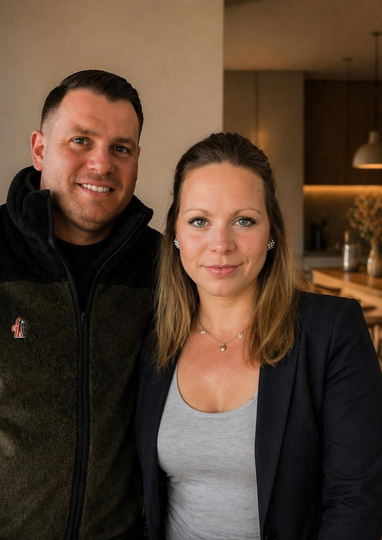 Hinter Five Home Lodges stehen wir - Kristina & Mathias.